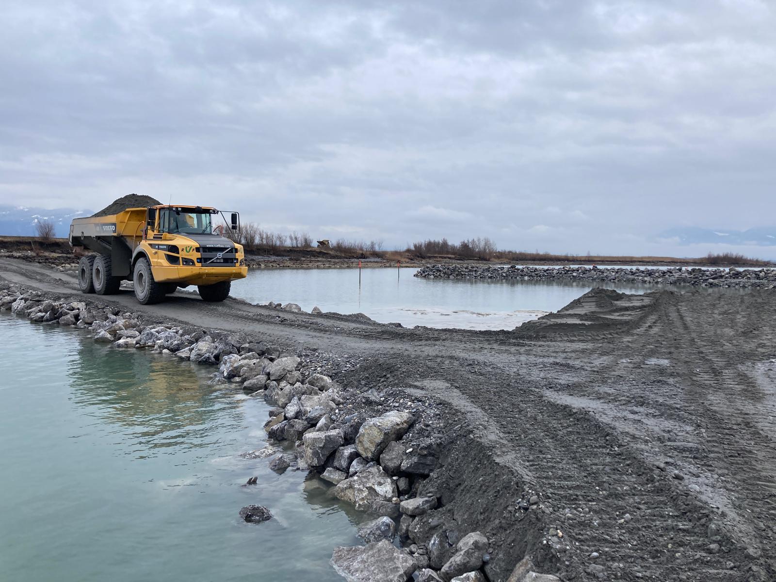 Am linken Ufer des Rheins entsteht bei Kilometer 93,8 an der Vorstreckung eine neue Kiesinsel. Was auf den ersten Blick wie eine einfache Aufschüttung aussieht, ist in Wirklichkeit ein bewusste Massnahme im Rahmen einer ökologischen Aufwertung.